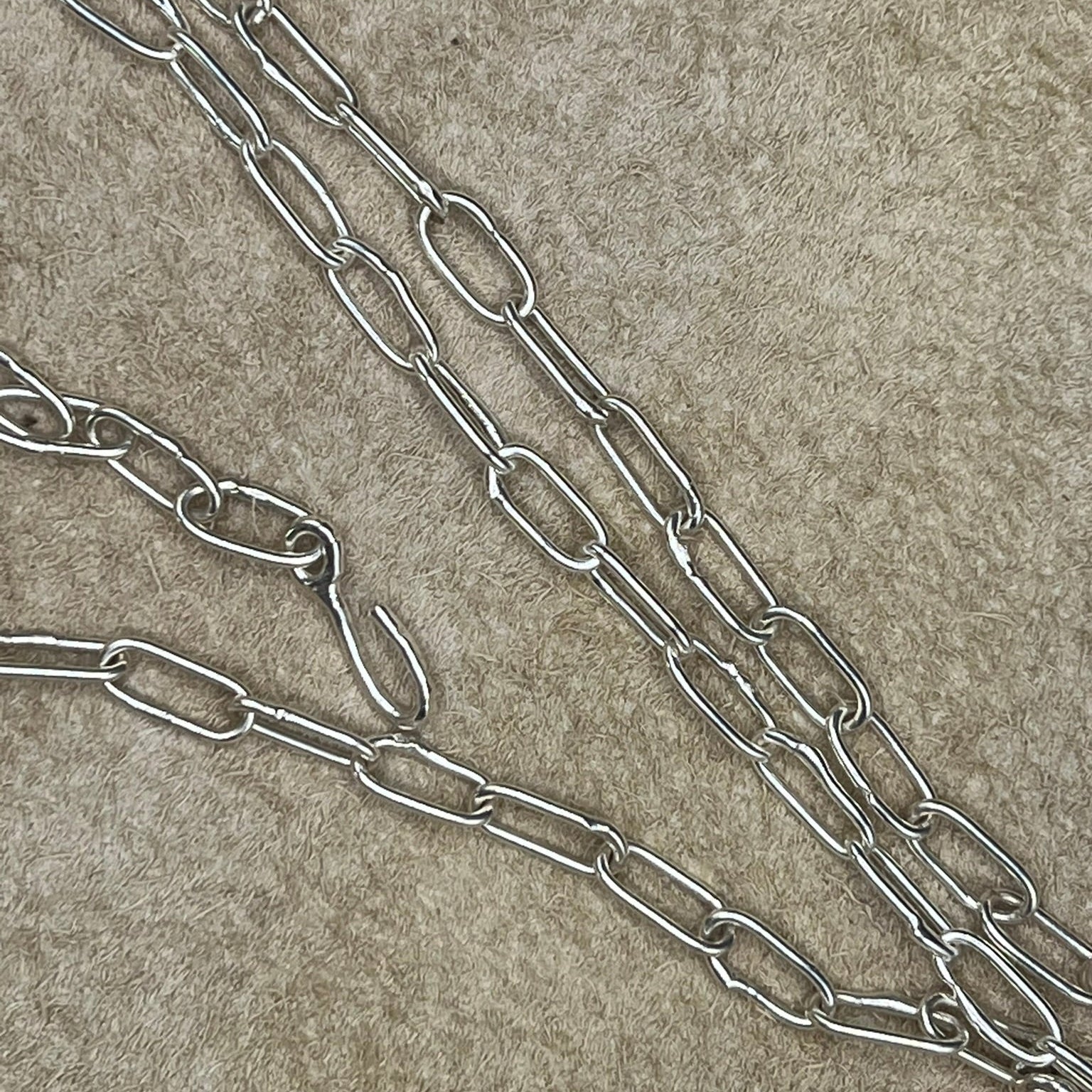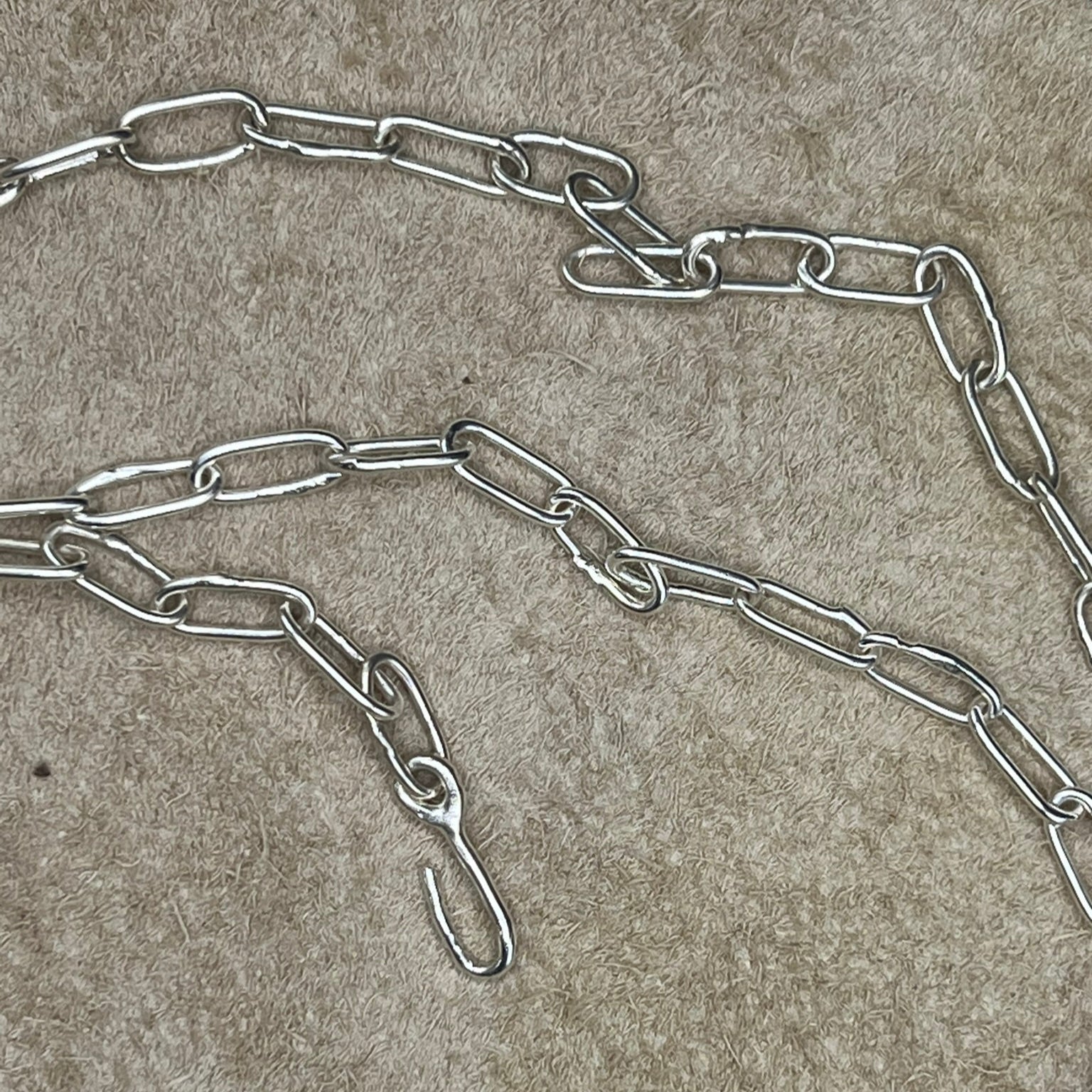 forged 925 Silver chain with individual handmade links and custom hook clasp.